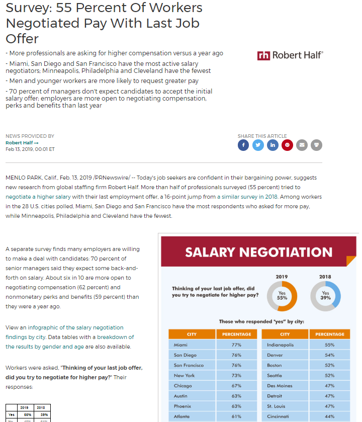 This release is practically a case study on how to reel in readers; it’s got a headline that “teases” the main takeaway, sub-headlines that provide more snippets that appeal to their audience, and an infographic that increases this release’s online discoverability. The larger purpose of the content is to promote Robert Half’s blog, where they post survey findings and helpful job-seeking best practices, while promoting their brand of expertise. And this information would’ve been stuck on that company blog, appealing to only its current followers, if they hadn’t decided to also distribute it to a wider audience of new readers as a press release. In short, Robert Half has found a way to incorporate press release distribution into their larger content marketing strategy, finding themselves potential new brand loyalists in the process.
