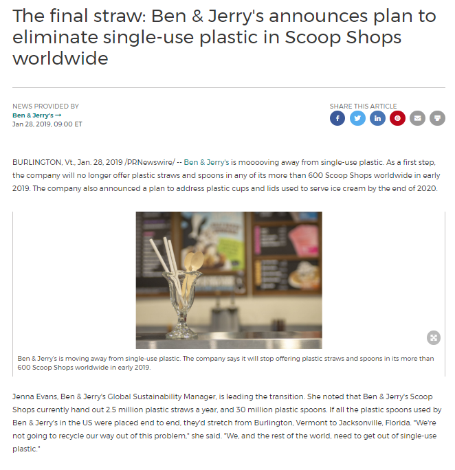 See what they did there? This release had me at “moooooving away!” It’s part of Ben & Jerry’s brand identity that they don’t take themselves too seriously, but they do take sustainability seriously. Ben & Jerry’s was quick to see the tide turn against single-use plastic, and to make a commitment to taking action on it. And because they know their target consumers care about this too, they were sure to broadcast this news to a wide audience via a wire distribution. Then, to ensure their content doesn’t get lost in the daily deluge of news, Ben & Jerry’s does a few things to make their release unique: interesting visuals, playful wording that appeals to their audience, as well as eye-catching bullet points that outline their next steps to accomplish this goal. This news from Ben & Jerry’s is sure to stand out in a crowded field.